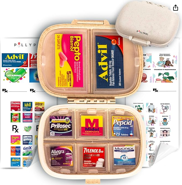 Key meds to pack (sold seperately) – Tylenol, Allergy medicine, motion sickness medicine, Antiacids, and Stomach Relief